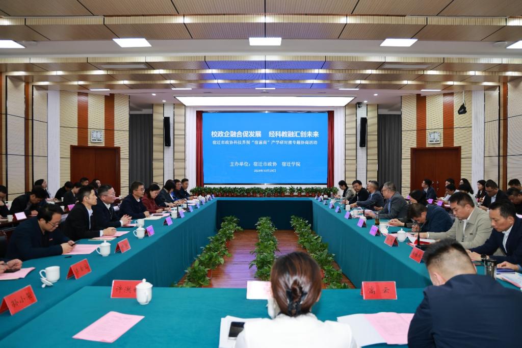 为促进校政企融合发展,切实推进经科教联通融汇,持续推动《宿迁学院服务宿迁“三联三融”“十大星火计划”实施意见》做深做实,10月29日下午,由宿迁市政协和我校联合举办的“校政企融合促发展,经科教融汇创未来”宿迁市政协科技界别“宿惠商”产学研对接专题协商活动在图书馆学术报告厅举行。校长潘志明、副校长童毛弟,市政协党组成员、副主席赵昌,二级巡视员后宁等出席活动。活动由丁红燕副校长主持。