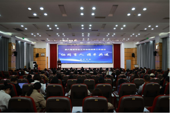 为加强校政合作,推进优势互补,提高师范生培养质量,10月25日上午,我校在求索楼报告厅召开第六届师范生“高校-教育行政主管部门-中小学幼儿园”三方协同培养工作会议。校长潘志明、副校长郭照冰、宿迁市教育局副局长卢俊波出席会议,会议由校党委常委、教务处处长陆海霞主持。