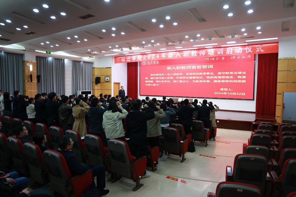 “开班第一课”上,潘志明围绕牢记嘱托——深入学习习近平总书记关于教育的重要论述;践行使命——宿迁学院高质量发展与探索;立德树人——做新时代“四有”好老师等三个方面做了专题报告。他指出,新入职教师要牢记坚定不移落实好立德树人根本任务、强化教育对科技和人才的支撑作用、提升教育公共服务质量和水平、培养造就新时代高水平教师队伍、建设具有全球影响力的重要教育中心是建设教育强国的重要任务,希望新入职教师要牢记嘱托,坚持用习近平新时代中国特色社会主义思想铸魂育人;要熟记宿迁学院的地方性、应用型、开放式办学定位,聚焦“三高目标”、聚力“四大突破”和长远发展目标,积极参与学校高质量发展探索与实践;要做新时代“四有”好老师,时刻谨记理想信念是好老师的不竭动力、道德情操是好老师的成长阶梯、扎实学识是好老师的实践工具、仁爱之心是好老师的成就之根。
