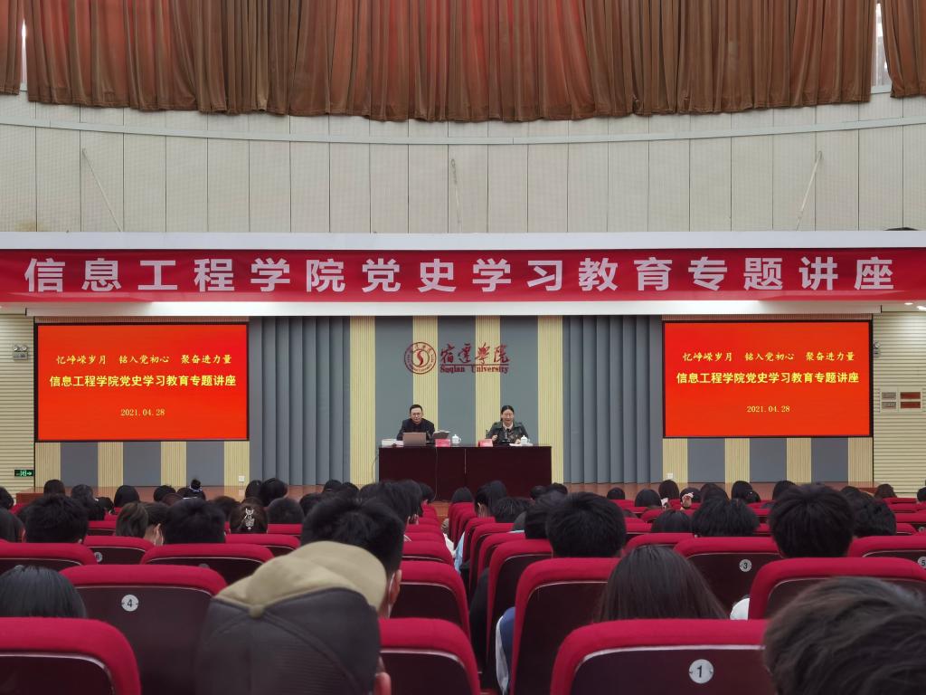 4月28日下午,信息工程学院邀请“红色讲师”、政协宿迁市文化文史和学习委副主任、二级调研员洪声作“忆峥嵘岁月、铭入党初心、聚奋进力量”专题报告会,帮助师生更好地学习宿迁党史和革命史。