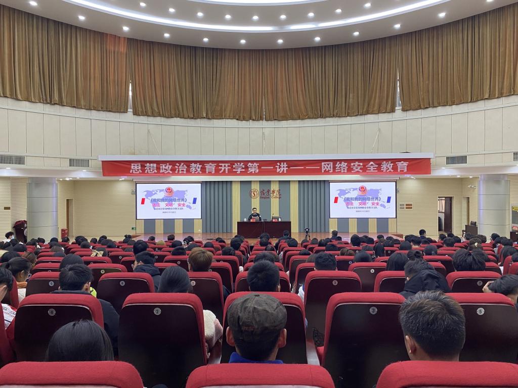 为深入贯彻习近平总书记对国家网络安全工作提出的“四个坚持”重要原则,以及国家网络安全有关法律法规和政策标准,提升学生网络安全防范能力和防范意识,营造健康和谐的校园网络环境,11月20日下午,在新图报告厅,我校开展思想政治教育“开学第一讲”暨机电工程学院“铸机电魂、育机电人”大讲堂第一讲网络安全教育活动。校党委常委、副校长丁红燕,校党委常委、宣传部部长孙以泽出席活动。