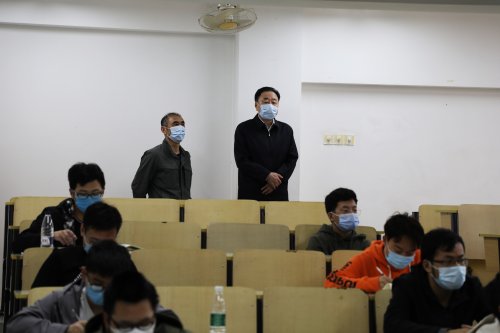 5月12日上午,校长封超年、董事长闵铁军、党委书记顾晓虎等在校的校领导对线下教学进行现场检查。