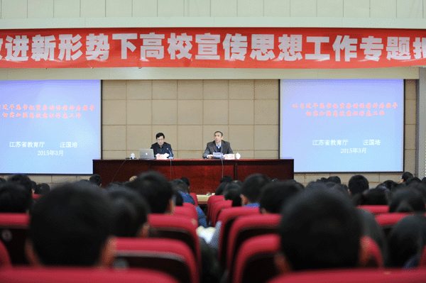 会上,汪国培处长作了题为《以习近平总书记重要讲话为指导 切实加强高校意识形态工作》的专题报告。报告分为两个部分,一是当前高校意识形态工作面临的形势和任务,二是以习近平总书记重要讲话为指导,切实加强意识形态工作。汪处长强调,要把学习宣传贯彻习近平总书记系列重要讲话作为重要任务,要加强对意识形态工作队伍和阵地的管理,要牢牢把握新形势下高校意识形态工作着力点,要把大学文化建设作为重要载体,要创新内容和形式,提高科学化水平。