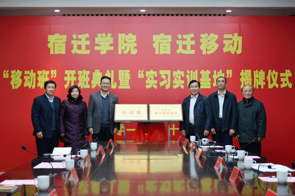 随后,闵铁军院长与宿迁移动公司王刚书记为“移动班”和“实习实训基地”揭牌。