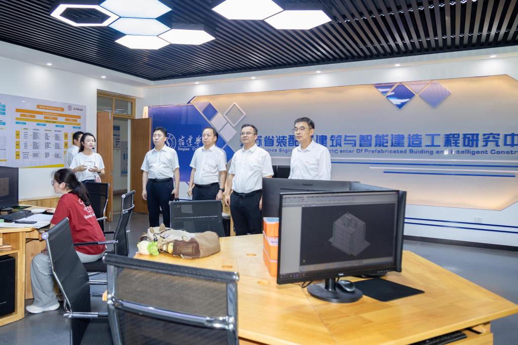 仪式前,奚家米一行实地参观了我校斯迪克新型功能膜材料与技术协同创新中心、江苏省智能制造装备关键技术工程研究中心、江苏省装备式建筑与智能建造工程研究中心、宿迁学院京东现代产业学院和校史馆。