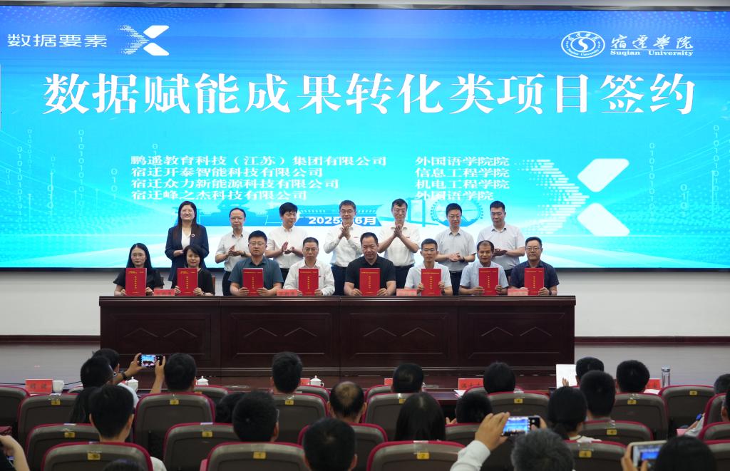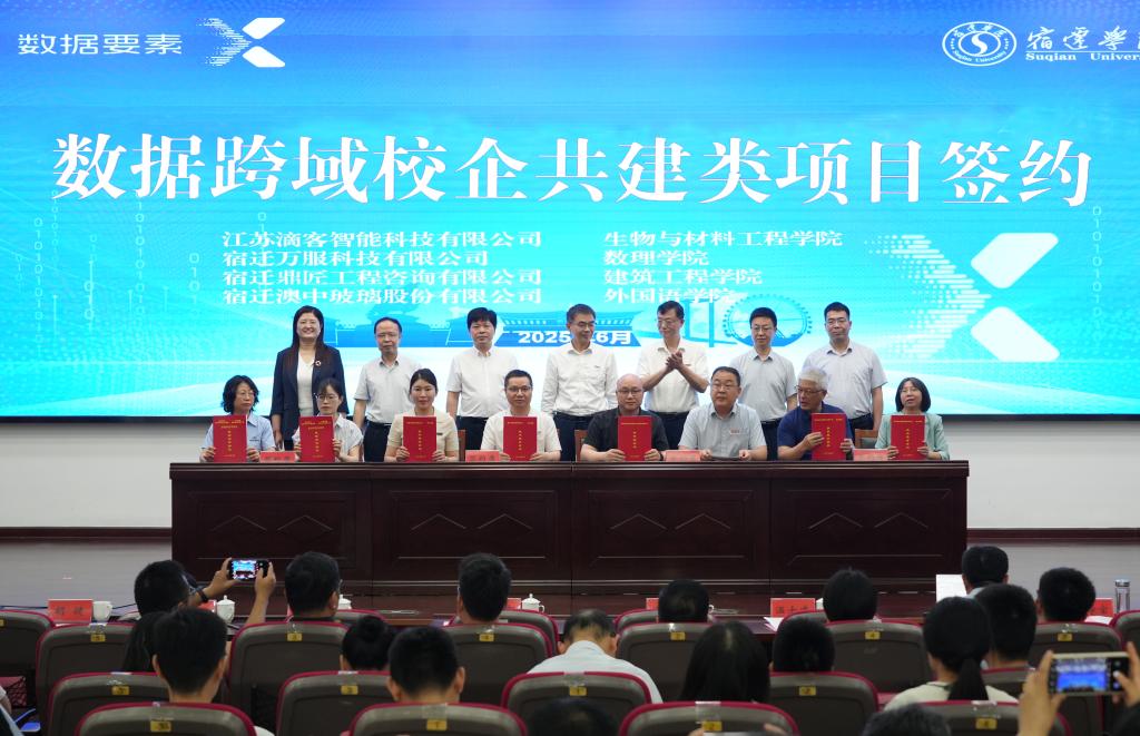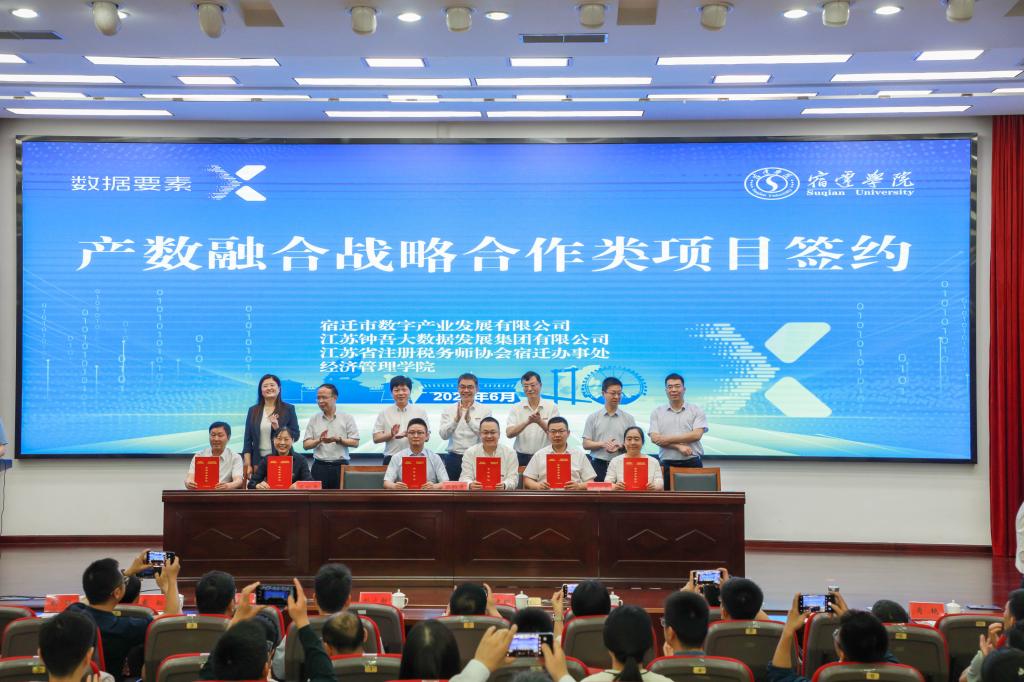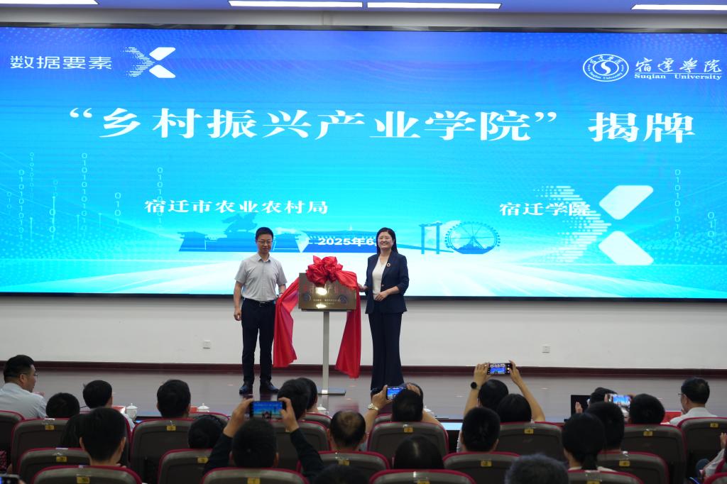 会上,宿迁市农业农村局党组成员、副局长马俊斌与宿迁学院经济管理学院院长肖艳共同为“乡村振兴产业学院”揭牌;活动现场签约11个项目,其中产数融合战略合作类项目3个、数据跨域校企共建类项目4个、数据赋能成果转化类项目4个。
