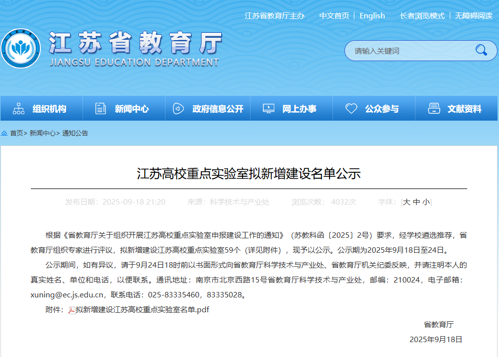 9月18日,江苏省教育厅网站公示“拟新增建设江苏高校重点实验室名单”,我校申报的“光电智能与绿色封装膜材料实验室”和“人形机器人结构与控制实验室”双双入选省高校重点(建设)实验室。