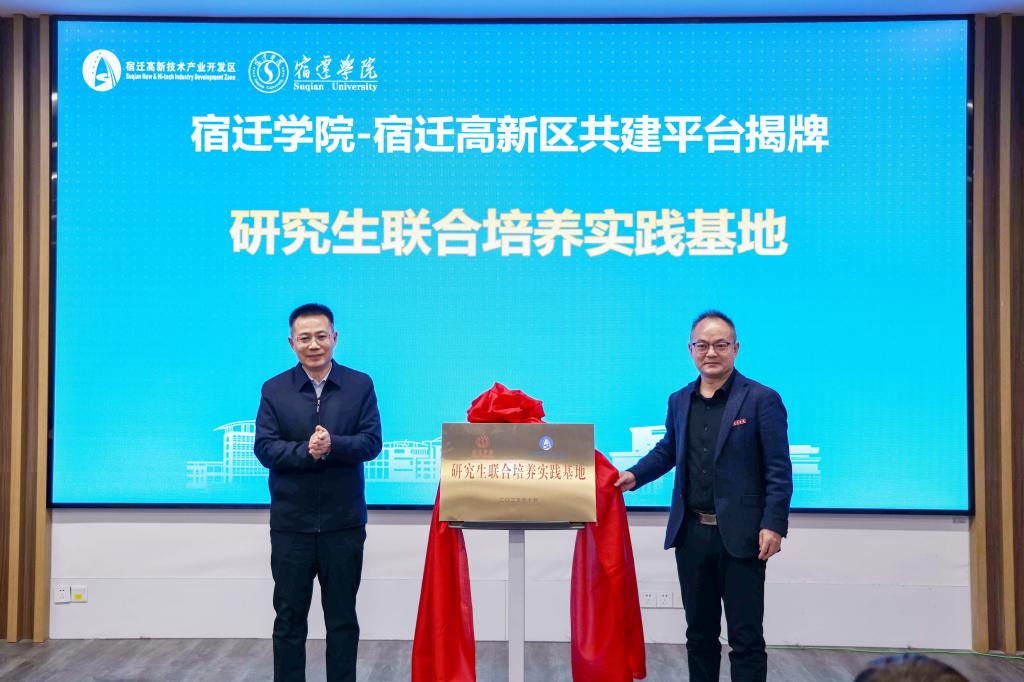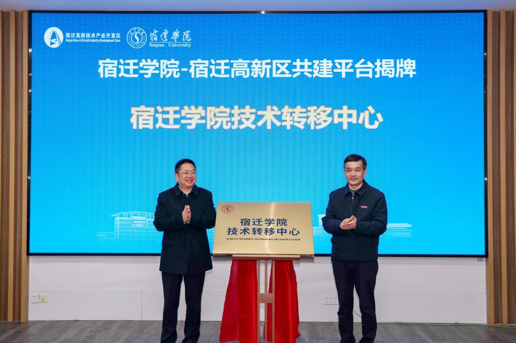 会上,双方共同为“宿迁学院技术转移中心”“宿迁高新区 宿迁学院研究生联合培养综合实践基地”“江苏省光电智能与绿色封装膜材料重点(建设)实验室”“江苏省人形机器人结构与控制重点(建设)实验室”“江苏省新型功能膜材料与技术工程研究中心”揭牌;我校与中科沃业江苏生物有限公司等9家企业签署项目合作协议。