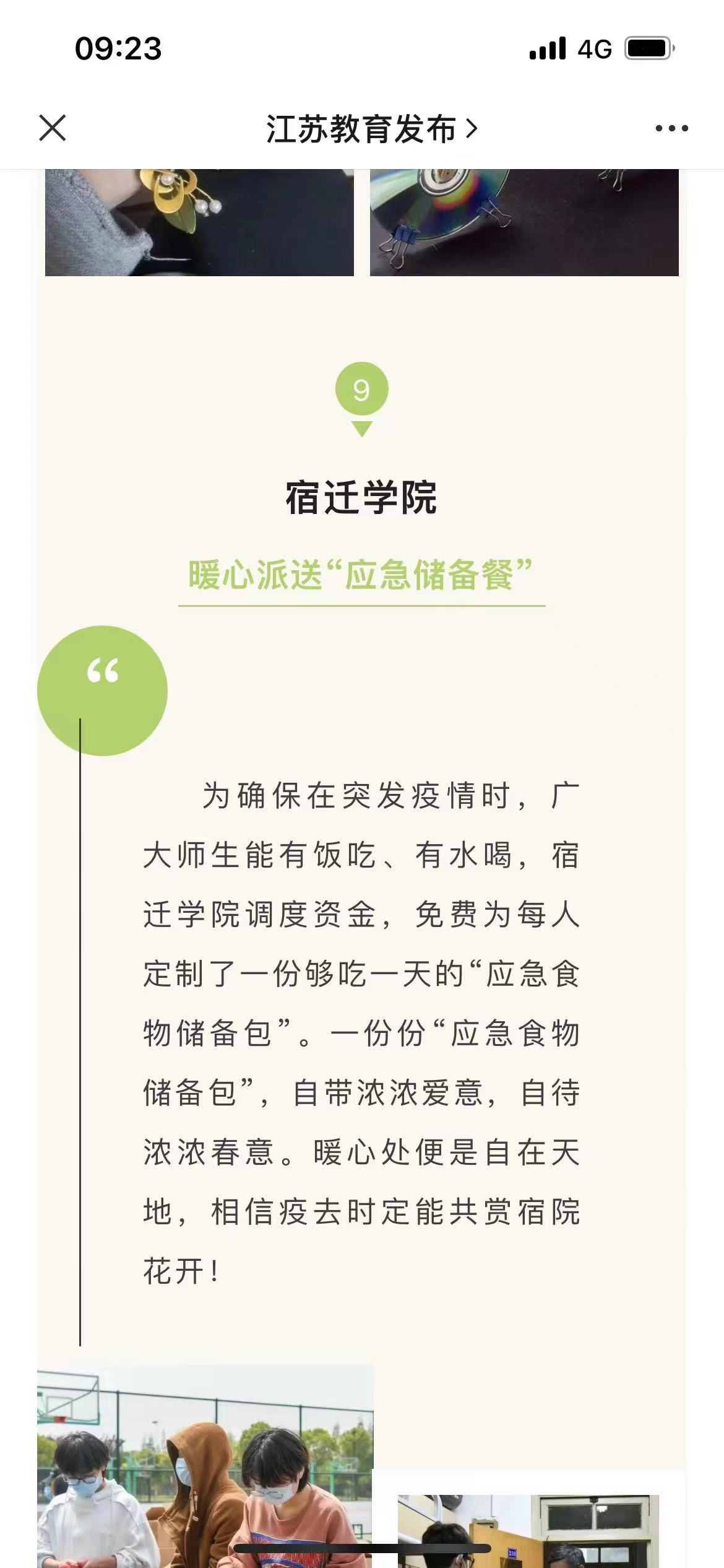 江苏教育发布:宿迁学院暖心派送“应急储备餐”