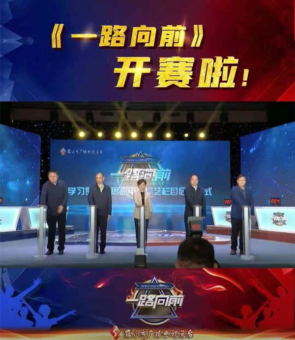 为了增强党史知识学习的趣味性、挑战性,提高师生学习党史知识的积极性,树立学习榜样,4月15日,宿迁学院利用宿迁市广播电视总台创办的全省唯一学习贯彻新思想电视综艺栏目《一路向前》,在校内大学生活动中心多功能厅现场录制了宿迁学院党史知识竞赛专场,11名师生选手同台竞技,300多名师生观摩了比赛,重温党史知识。