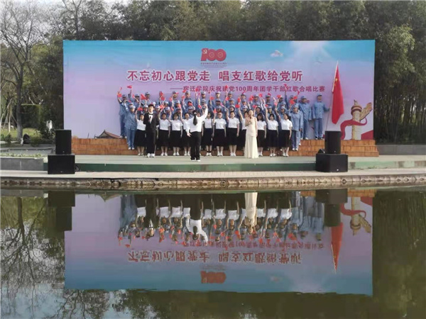 中国江苏网4月14日宿迁讯 碧水映初心,红歌献给党。4月14日下午,在宿迁学院海豚湾,该校全体团学干部激情放歌,庆祝建党百年。除了合唱规定歌曲《光荣啊,中国共青团》,各代表队还演唱了《我爱你中国》《少年中国说》《我和我的祖国》《唱支山歌给党听》《强军战歌》《共和国之恋》《在灿烂阳光下》《我的中国心》《没有共产党就没有新中国》等自选歌曲。