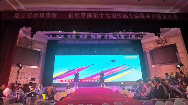 4月10日晚,宿迁学院大学生活动中心多功能厅,第17届校园十佳歌手总决赛精彩呈现,17位选手首先合唱建党100周年版《少年》,拉开本次大赛的序幕。