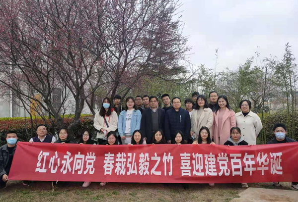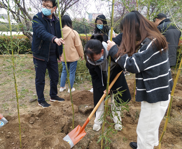 中国江苏网3月12日宿迁讯 3月12日,植树节。为喜迎建党100周年,进一步加强师生“不忘初心、牢记使命”教育,激发奋进之心、增强集体荣誉感,宿迁学院法政学院党总支以党员为主体组织师生开展“红心永向党,春栽弘毅之竹”主题活动。在学校“求索楼”旁边的松竹园,大家齐动手栽植新竹,以此表达弘毅奋进之心。